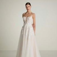 A-line wedding dress with sweetheart neckline with straps and low back in tulle