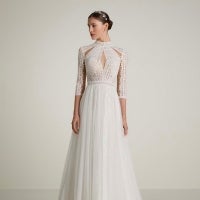 Ballgown wedding dress with high neck with detachable sleeves in lace